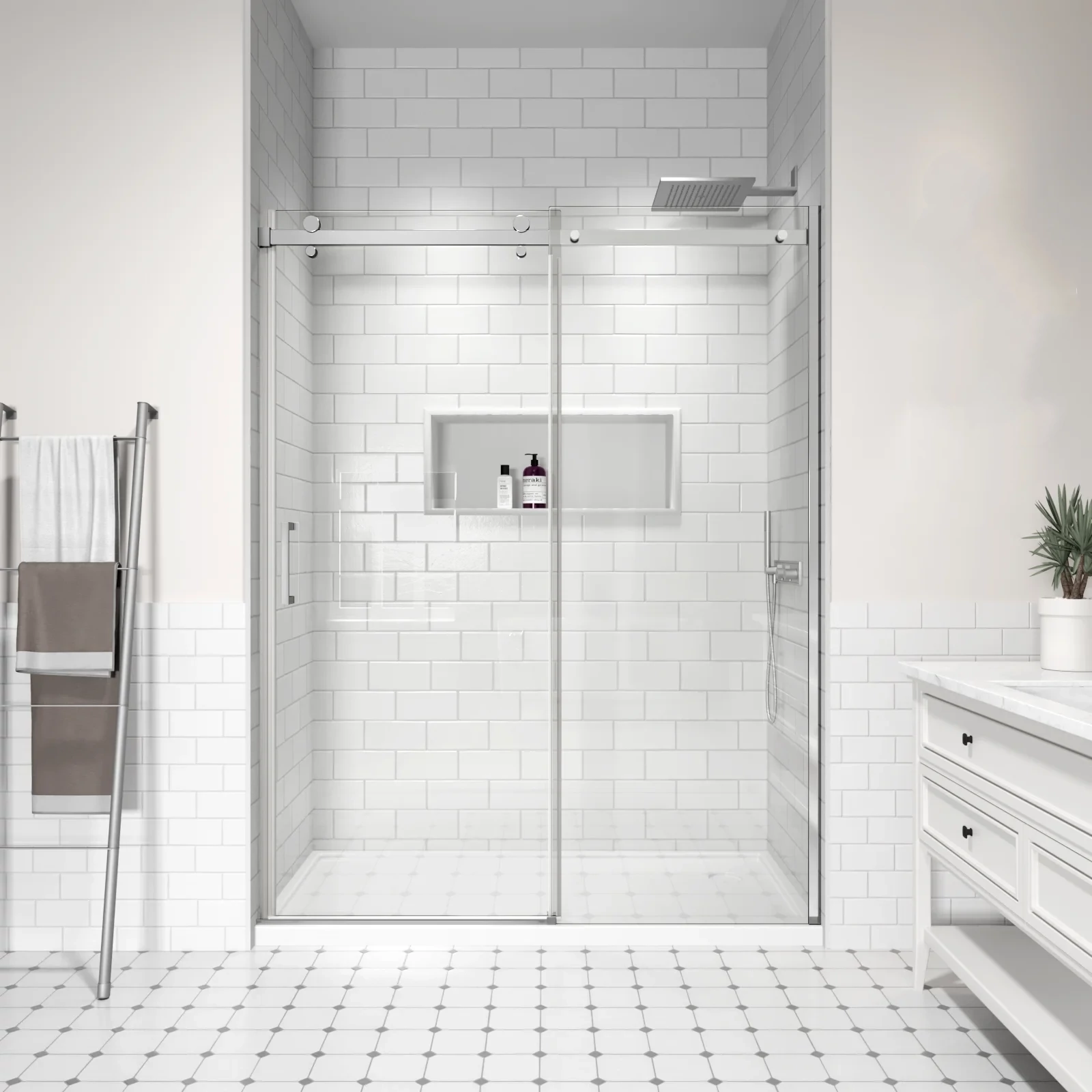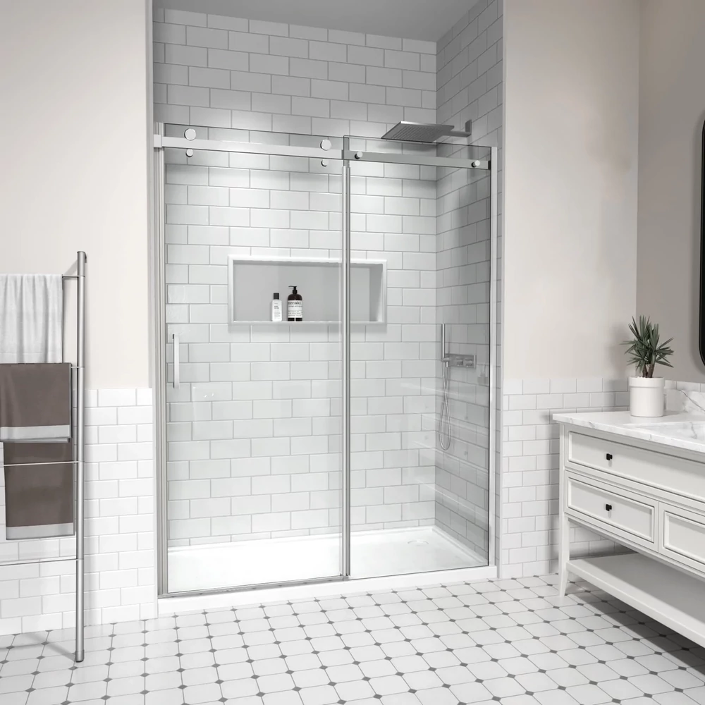 Styl našich praktických a elegantních sprchových dveří může být klíčem do každé koupelny a zároveň poskytuje snadný a pohodlný přístup a použití vaší sprchy. Každý člen rodiny produktů je vyroben z 8 mm silného bezpečnostního skla. Povrch skleněné tabule byl také ošetřen nano povlakem, díky kterému je odolnější vůči vodnímu kameni, mýdlu a jiným usazeninám, takže se velmi snadno udržuje v čistotě. Tato tloušťka skla prvotřídní kvality použivá komponent určených pro vysokou nosnost. Stěnové profily jsou vyrobeny z chromovaného hliníku a vodicí kolejnice z nerezové oceli (304). Horní kolečka jsou extra silná excentrická měděná kolečka. Tyto použité díly zajišťují dlouhou životnost produktu. Díky armaturám je jejich směr montáže univerzální, takže je možné je namontovat v pravém i levém směru. Jakékoli nerovnosti stěny lze dokonale eliminovat, protože profil stěny je nastavitelný o 1,5 cm. Naše sprchové dveře lze postavit na kachlová dna i sprchové vaničky. Prodáváme pouze výrobky privátní značky. Čekáme na vás s jedinečnou řadou produktů a obrovskými skladovými zásobami v zemi pro okamžitý servis! Můžete si vybrat ze šířky 120 130 140 150 cm a výšky 195 cm, takže si každý najde ten kousek, který se nejlépe hodí do jeho koupelny.