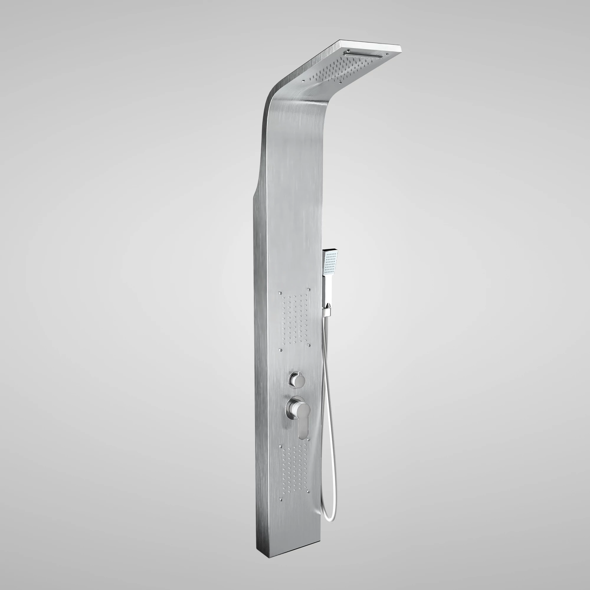 Skvělý doplněk do vaší koupelny! Náš sprchový panel je vyroben z nerezové oceli (304), což zaručuje dlouhou životnost panelu. Intenzitu vody lze snadno ovládat pomocí pákové mechanické směšovací baterie, přepínací ventil nabízí čtyři typy sprchových režimů, které lze snadno nastavit: tropický postřikovač, vodopádovou masáž, 2 integrované masážní trysky, elegantní chromovou ruční sprchovou hlavici. Silikonové trysky a hadice z nerezové oceli jsou odolné proti usazování vodního kamene. Design moderní karoserie sleduje nejnovější trendy, jejichž jedním z důležitých prvků je to, že zakřivení hlavice postřikovače zajišťuje, že nastavíte výšku dokonalého proudu vody. Zažijte to s tímto systémem sprchových panelů v čistém stylu. Nerezová ocel 304 díky svému složení nerezaví, což má za následek odolnost proti korozi ve srovnání s nerezovou ocelí řady 201 používanou jinde. Balíček obsahuje také všechny součásti potřebné k instalaci a komplexní průvodce instalací.