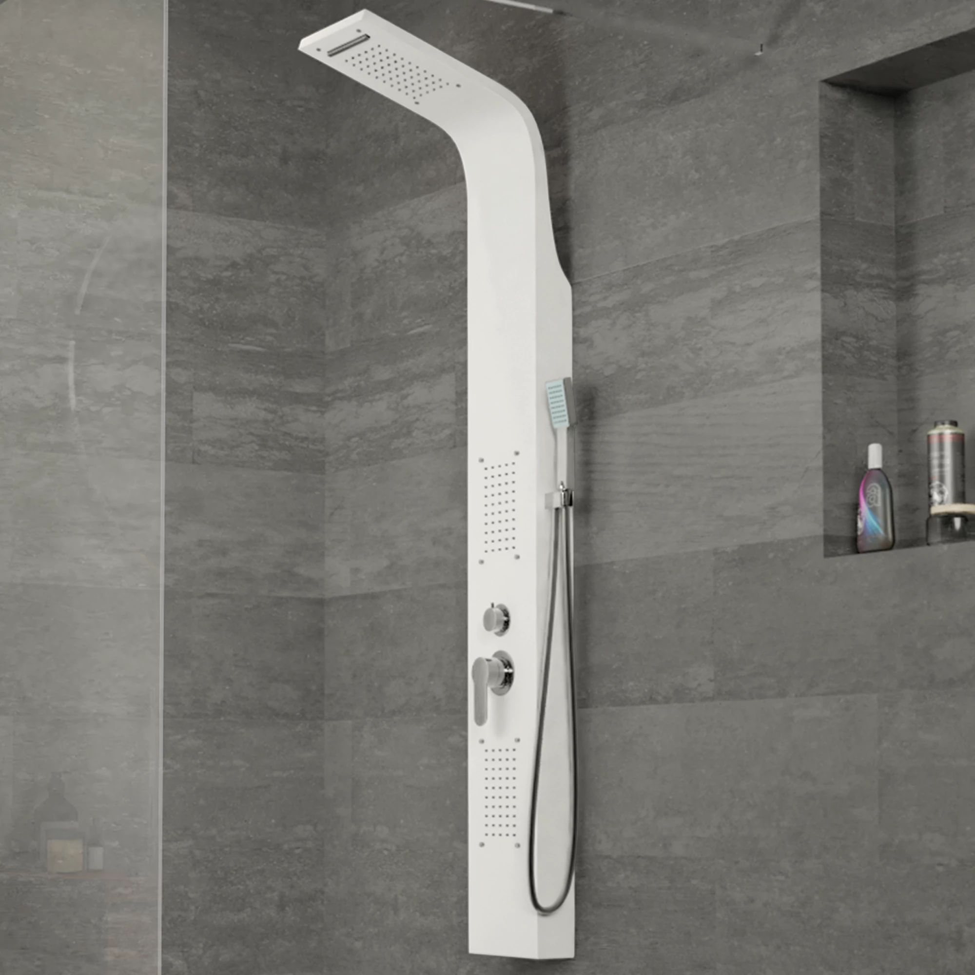Skvělý doplněk do vaší koupelny! Náš sprchový panel je vyroben z nerezové oceli (304), což zaručuje dlouhou životnost panelu. Intenzitu vody lze snadno ovládat pomocí pákové mechanické směšovací baterie, přepínací ventil nabízí čtyři typy sprchových režimů, které lze snadno nastavit: tropický postřikovač, vodopádovou masáž, 2 integrované masážní trysky, elegantní chromovou ruční sprchovou hlavici. Silikonové trysky a hadice z nerezové oceli jsou odolné proti usazování vodního kamene. Design moderní karoserie sleduje nejnovější trendy, jejichž jedním z důležitých prvků je to, že zakřivení hlavice postřikovače zajišťuje, že nastavíte výšku dokonalého proudu vody. Zažijte to s tímto systémem sprchových panelů v čistém stylu. Nerezová ocel 304 díky svému složení nerezaví, což má za následek odolnost proti korozi ve srovnání s nerezovou ocelí řady 201 používanou jinde. Balíček obsahuje také všechny součásti potřebné k instalaci a komplexní průvodce instalací.