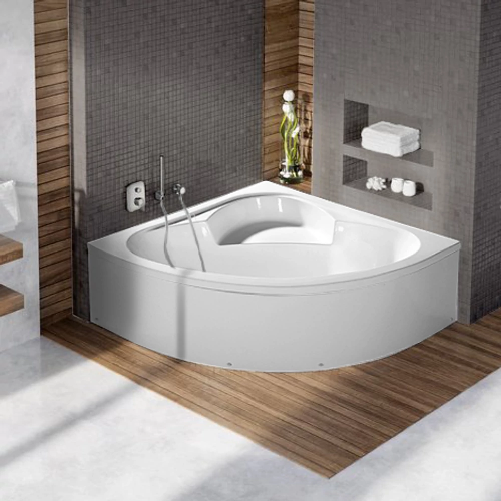 Moderní design našich symetrických rohových van je skvělou volbou do koupelny. Mezi různými velikostmi si každý zaručeně najde ideální vanu, která poskytuje pohodlnou koupel až pro 2 osoby. Akrylová deska má tloušťku 4 mm a zajišťuje snadné čištění a vysokou odolnost proti oděru. Vysoce lesklý povrch našich van je příjemný a teplý na dotek. K vanám doporučujeme přední panel, vanovou vyrovnávací patku a odtok vany. Technické údaje: - tělo akrylátové vany má tloušťku 4 mm - výztuha ze syntetické pryskyřice-skelného vlákna na těle vany - výztuha z tvrdého dřeva na dně - neochlazuje vodu díky svému teplému dotykovému povrchu - drobné škrábance a zranění lze snadno opravit. Vyrobeno z vysoce kvalitní akrylové fólie.